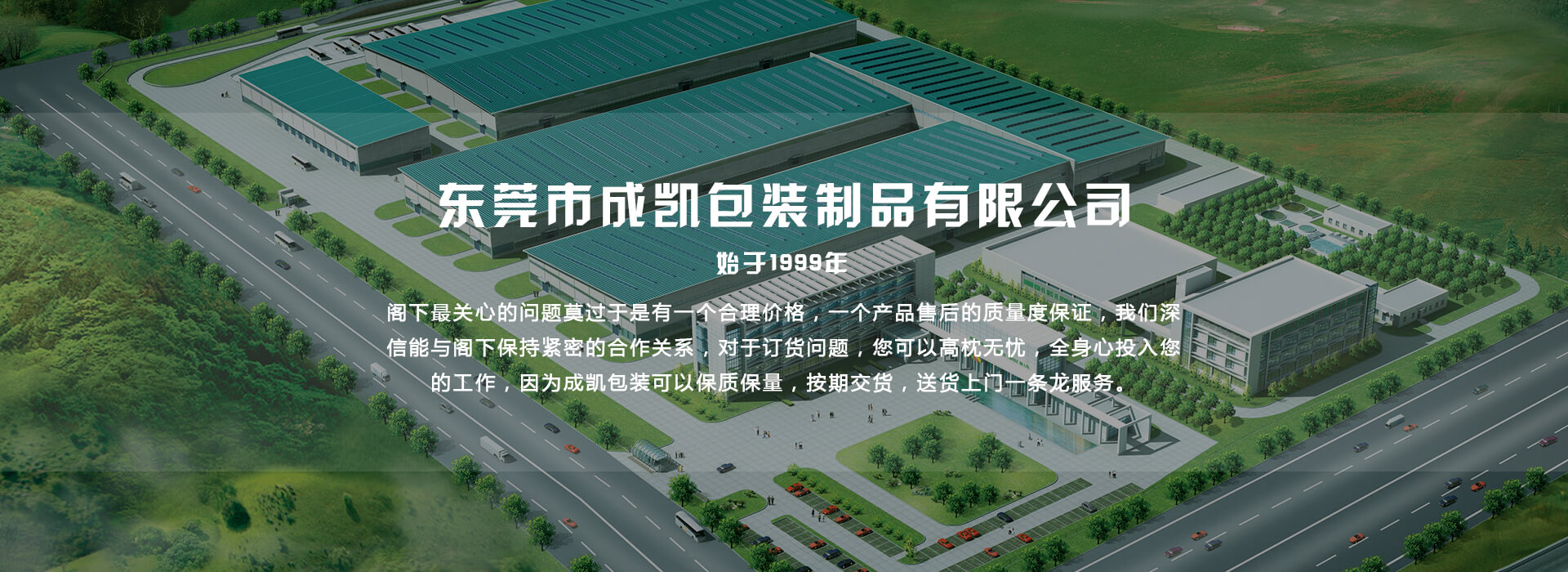 公司的成功当然离不开阁下的默契合作和独具一格的产品质量保证,正因为公司可以做到这一点足可以解除阁下的后顾之忧,经验告诉我们,阁下最关心的问题莫过于是有一个合理价格,一个产品售后的质量度保证,我们深信能与阁下保持紧密的合作关系,对于订货问题,您可以高枕无忧,全身心投入您的工作,因为成凯包装可以保质保量,按期交货,送货上门等一条龙服务。